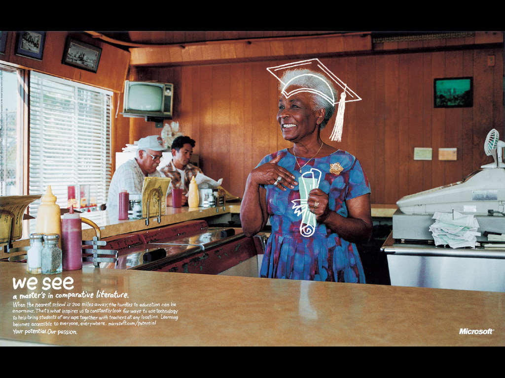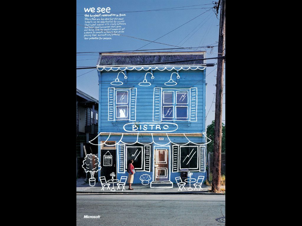 Microsoft - Мы видим. От идеи до воплощения - креативная реклама на 5+Пять классных принтов от Microsoft, общая идея - мы видим что-то новое в обычном. В вас. Креативная идея, креативный дизайн, отличное исполнение |