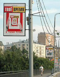 Рекламная тумба вертится перед носом прохожих на Невском проспекте у Аничкова дворца. Новый рекламоноситель - круглую тумбу-карусель, рекламисты города хвалят, но купят только под давлением власти...