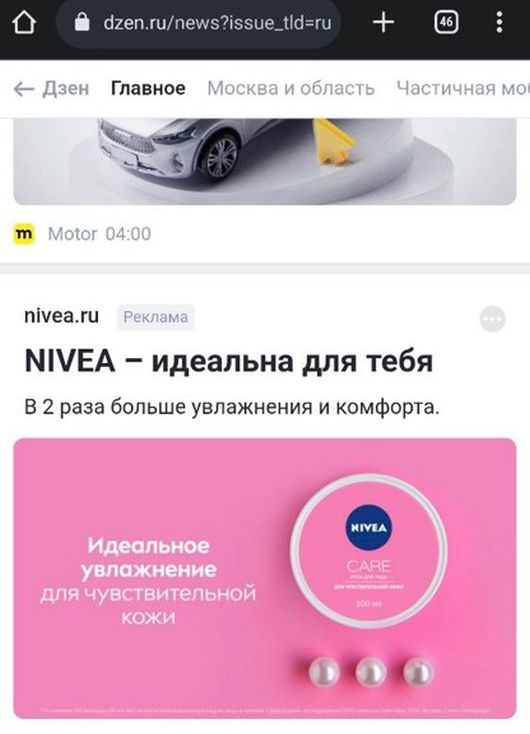 Немецкий бренд Nivea начал рекламировать свою продукцию в разделе «Новости» на «Дзен» — ранее «Яндекс новости». Об этом сообщил Shopper's.