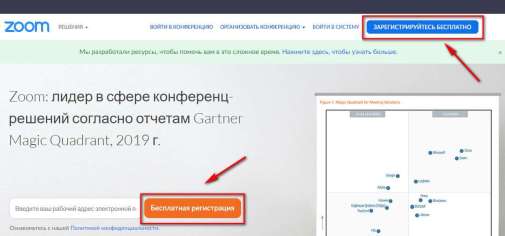 Заходим на сайт Zoom, нажимаем на кнопку «Зарегистрируйтесь бесплатно» или «Бесплатная регистрация».