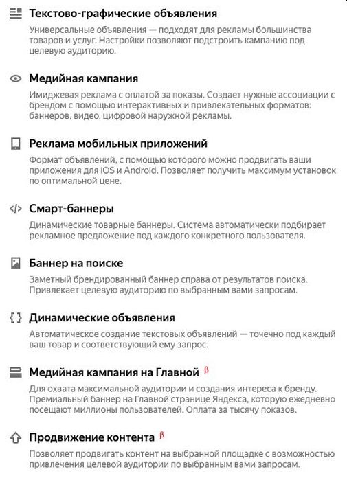 Начнем с типов рекламы в Яндексе по местам размещения (плейсментам).