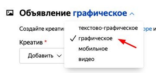 Есть несколько видов объявлений в рамках текстово-графической кампании.