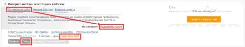 • нельзя отключать одно или несколько направлений, а также убирать галочки из чек-листа работ по внутренней оптимизации;