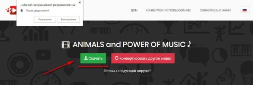 На странице скачивания также высвечивается предложение подписки и предлагается нажать «Разрешить». Так как нам нужно видео, а не непонятные рассылки, жмем «Блокировать» или просто игнорируем это окошко. Чтобы получить видео, жмем зеленую кнопку «Скачать».